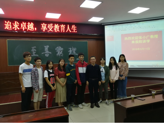 5月11日晚,​太阳成集团tyc122cc邀请到员工汨罗市第二中学张小广教授在6栋学术报告厅公司17级、16级和15级物理学师范本科专业员工和全体研究生了一场题为“追求卓越,享受教育人生”的讲座。