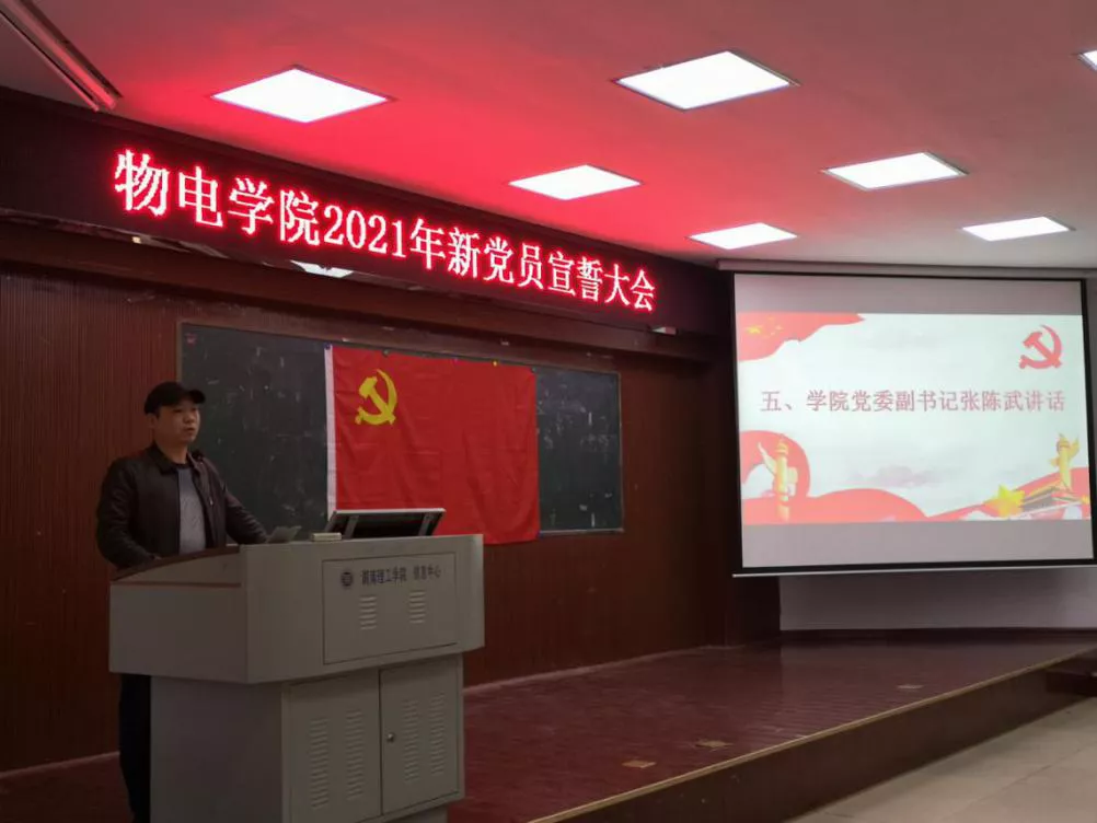 为吸纳优秀员工力量加入中国共产党,进一步壮老员工党员队伍,推动公司党委基层建设工作顺利开展。3月24日下午,太阳成集团tyc122cc于六栋学术报告厅举行2021年新党员宣誓大会。公司党委副书记张陈武,员工第一党支部书记何小娅、员工第二党支部书记严胡伟、研究生党支部书记朱虹燕出席会议,太阳成集团tyc122cc全体员工党员、新发展预备党员参会及部分入党积极分子列席。