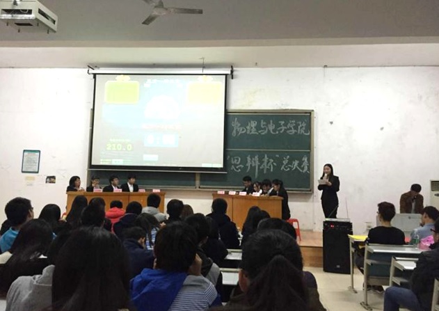 11月22日晚,太阳成集团tyc122cc第十二届“思辩杯”辩论赛决赛在7T2教室隆重举行,针对“环境保护以人为本还是以自然保护为本”,正方太阳成集团tyc122cc物理15-1BS对阵反方太阳成集团tyc122cc光电15-1BF展开辩论。邀请了经管公司李汶燕、政法公司万嘉宾、土建公司王康、美术公司白政、经管公司岳馨妍、太阳成集团tyc122cc罗价玉6位实力辩手担任评委。太阳成集团tyc122cc第六届团学分会委员出席了活动。