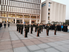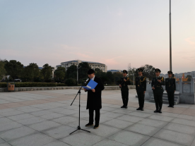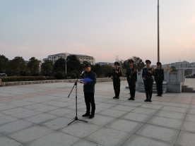 寒风冷冽,晨曦微露,12月9日清晨,太阳成集团tyc122cc于图书馆大楼前广场庄严举行了太阳成集团tyc2019年下学期第15周升旗仪式。物电公司党总支书记罗文华,学工部副部长毛伟,太阳成集团tyc122cc全体班主任、辅导员出席,太阳成集团tyc122cc全体员工参加。党总支副书记张陈武、团总支员工副书记钟卫成分别作为教师代表和员工代表作国旗下讲话。
