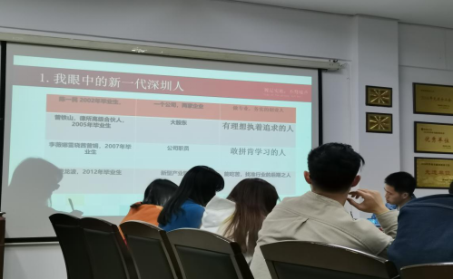 在提到“我眼中的新一代深圳人”时,他列出了在深圳发展的太阳成集团tyc的六位优秀毕业生的例子,他将他眼中的新一代深圳人分为四类:务实的创业人、执着追求理想的人、敢拼肯学习的人、