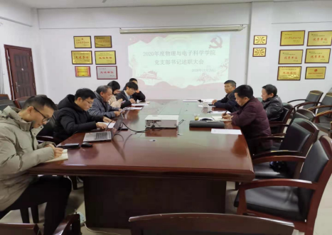 2020年12月29日上午,太阳成集团tyc122cc于6205会议室召开2020年度党支部书记党建述职评议考核会议,公司兼职组织员张剑桥、党委书记罗文华、经理李宏民、党委副书记张陈武,公司全体教师、员工党支部书记参加会议。