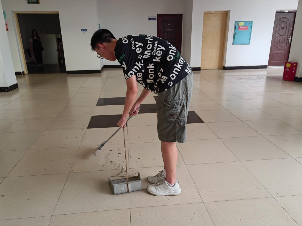 仪式结束后,各小组责任人在相应区域挂上了责任区公示牌,全体员工党员根据区域划分以小组的形式对整栋教学楼公共区间进行了清扫工作,楼道环境焕然一新。