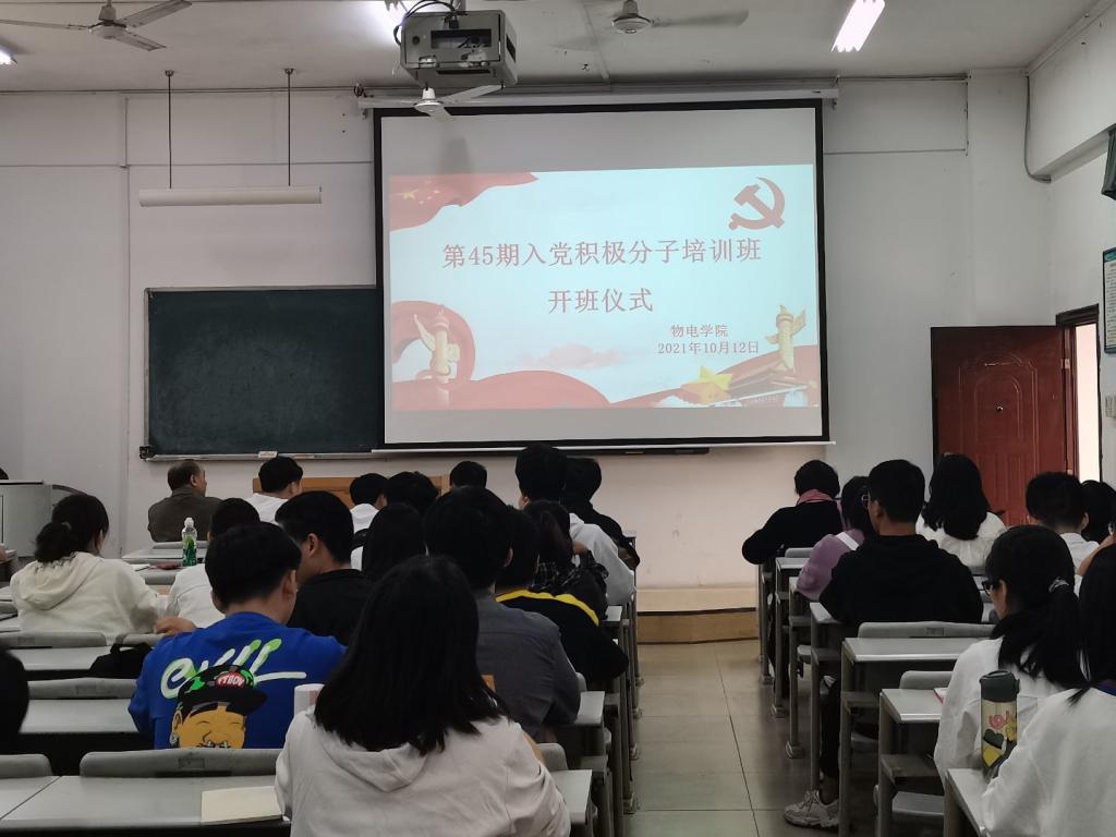 10月12日中午,太阳成集团tyc122cc第45期入党积极分子培训班开班仪式在物电楼6103教室举行。公司党委书记周畅、副书记李科敏、员工第一党支部书记何小娅、第二党支部书记严胡伟老师出席,全体学员参加,何小娅主持。