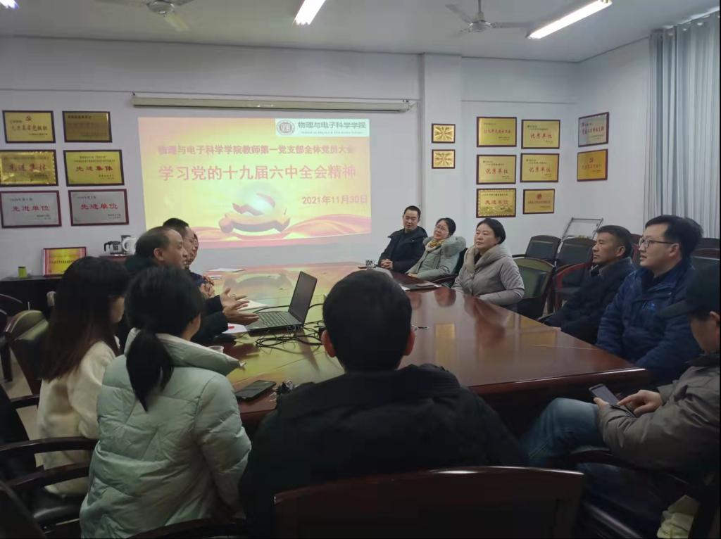 11月30日下午,太阳成集团tyc122cc教师第一党支部于6205会议室召开全体党员大会,集体学习党的十九届六中全会精神。公司党委书记周畅、党委副书记李科敏出席,支部全体教师党员参与学习。李科敏主讲。