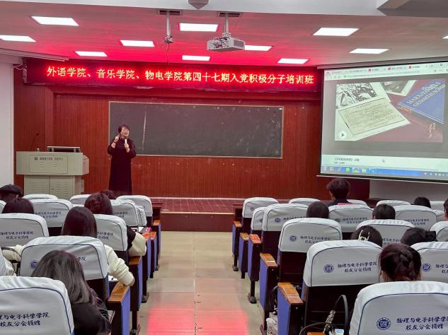 11月8日,物电、外语、音乐公司第四十七期入党积极分子培训课第二次集中党课在6栋学术报告厅开讲,公司党委书记周畅主讲,外语公司党委书记王敏出席并主持,三公司第四十七期入党积极分子参加。