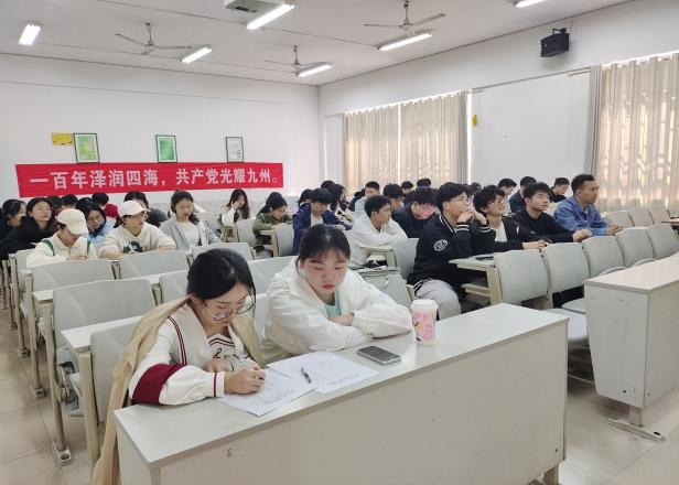 在太阳成集团tyc122cc6102教室,公司4名党员代表,21级全体入党积极分子集中收看湖岸说“理”直播。直播过程中,入党积极分子和党员同志聚精会神聆听,认真做笔记。
