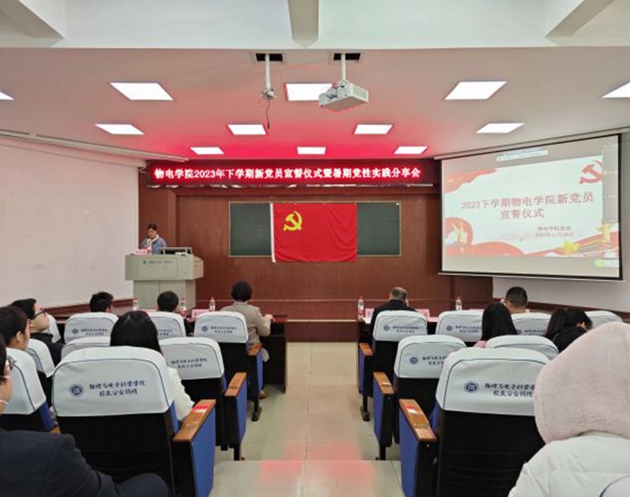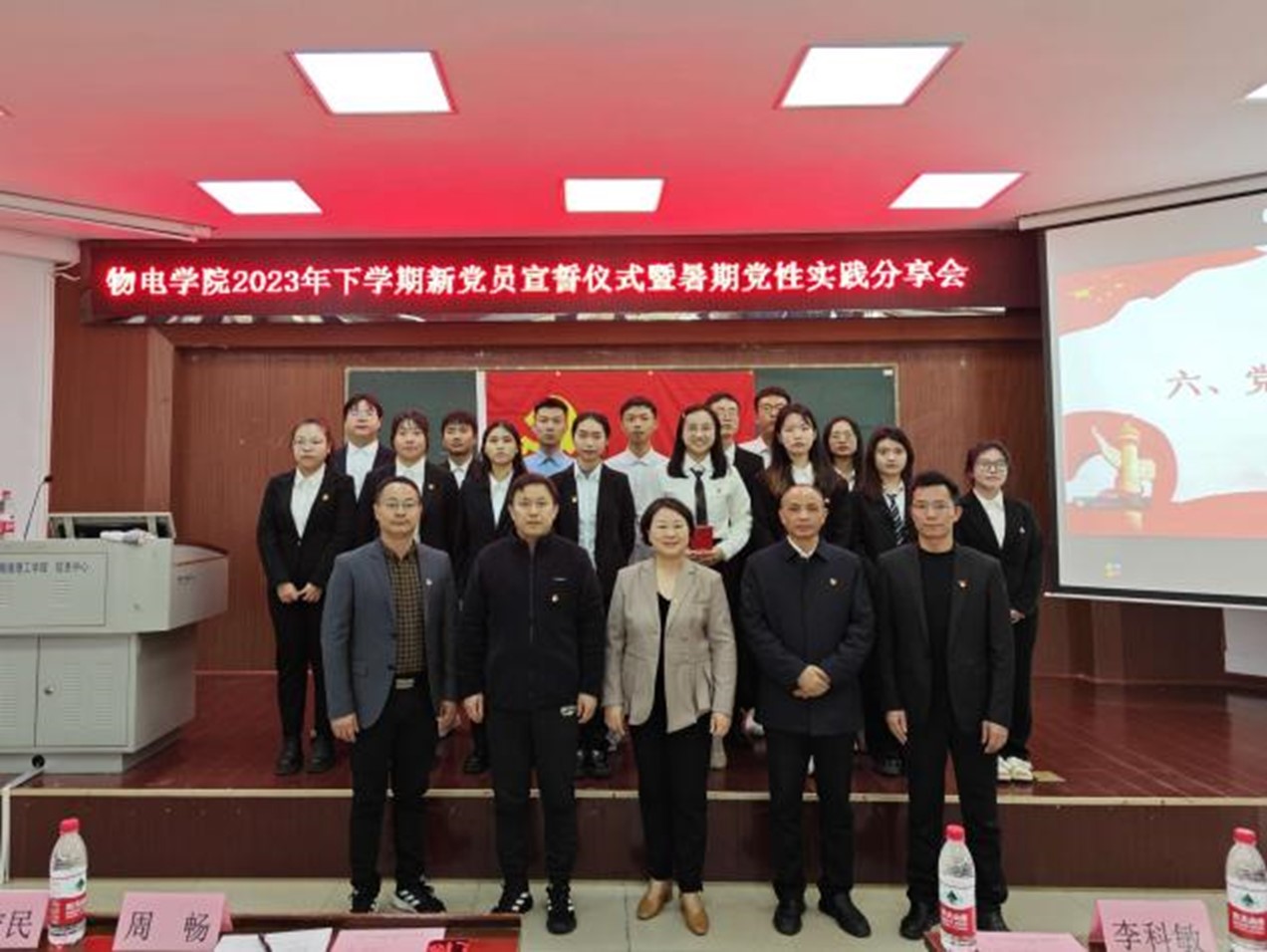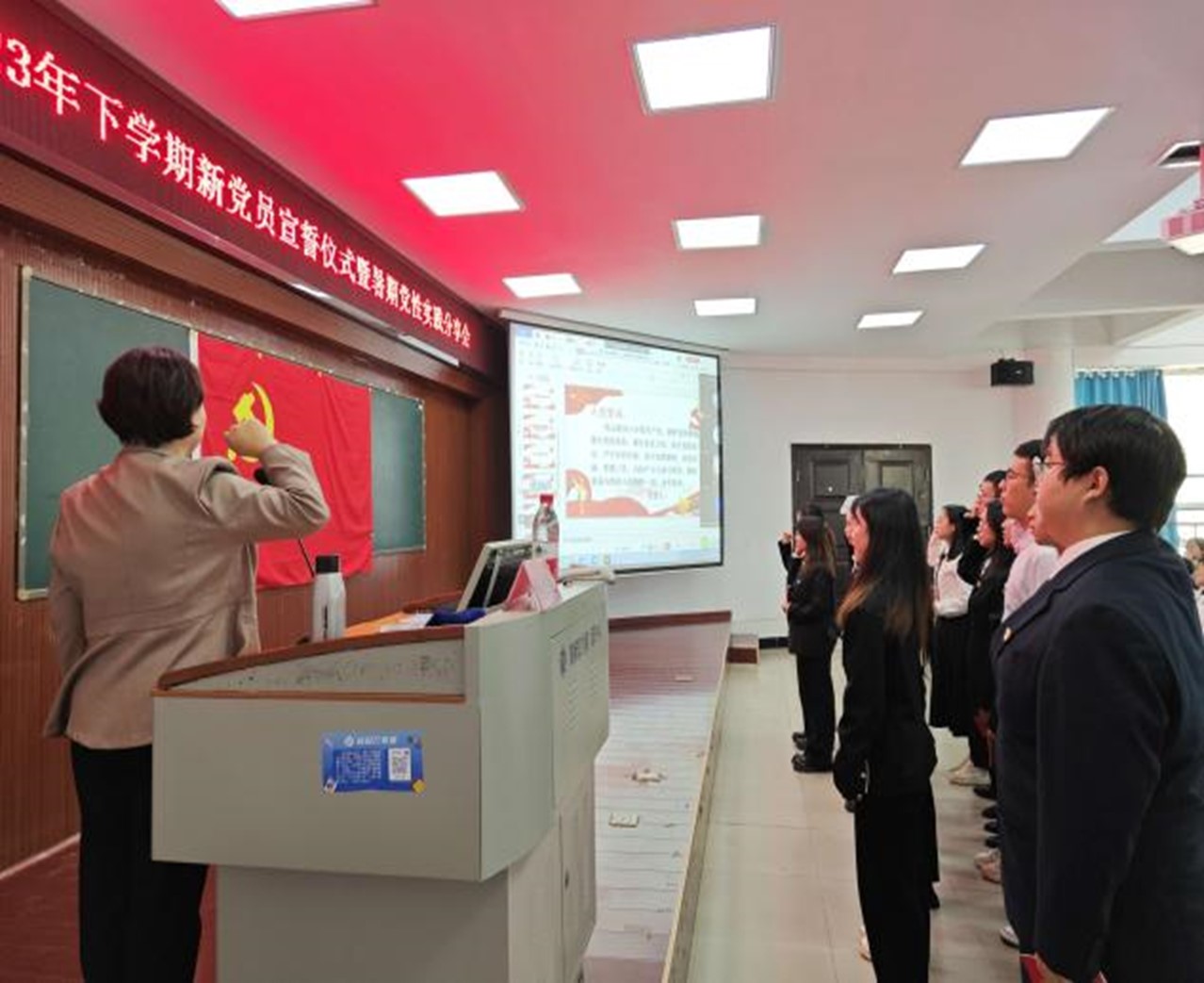 11月28日下午,2023年下学期新党员宣誓仪式在6号楼学术报告厅隆重举行。公司公司党委成员周畅、李宏民、李科敏、魏勇、邹志军出席,全体员工党员和入党积极分子参加,员工党支部书记何小娅主持。