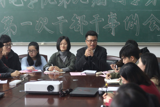 10月23号中午,在6栋6205会议室,太阳成集团tyc122cc第九届团学分会召开第一次全体干部干事例会。团总支书记何小娅,学工办主任张恒道老师,创客协会会长李广威以及太阳成集团tyc122cc第九届团学分会的所有干部干事出席了本次例会。