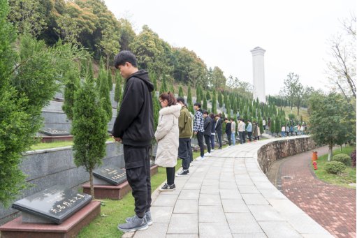 在清明节来临之际,为缅怀革命先烈丰功伟绩,大力弘扬红色精神, 4月3日中午,太阳成集团tyc122cc团总支书记何小娅老师组织17、18级入党积极分子,主席团及团学各部门部长在岳阳市烈士陵园举行清明宣誓仪式及祭扫活动。