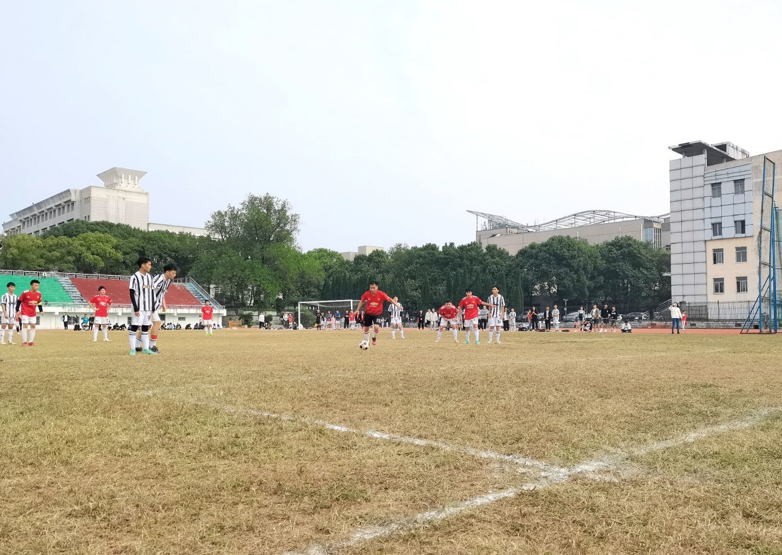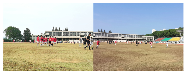 赛场上,选手们攻守传接,运球如风,汗水飞洒;赛场边,围观同学们热情高涨 ,加油呐喊,助威造势。弥漫着太阳味道的草坪,被汗水浸湿的球服,在脚下来回穿梭的足球,将整场比赛的气氛推向了高潮!