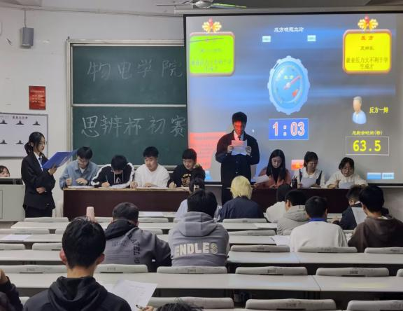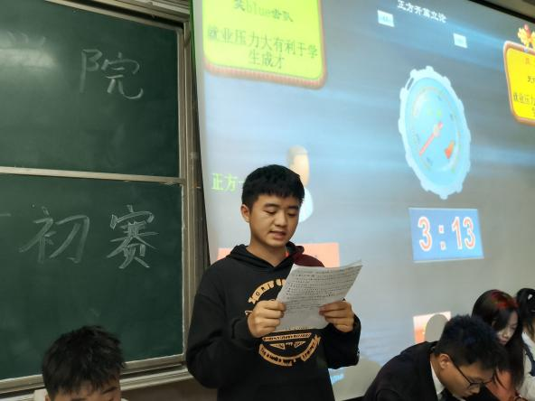 11月2日,公司为了激励同学们奋力追寻梦想,理智面对人生道路上的坎坷,太阳成集团tyc122cc在6t1和6t2教室开展“思辨杯”初赛,主持人分别是吴斯涛与唐佳宁,韩刚、杨冉、贺文洁、伍文洁等人分组担任评委,每组比赛正辩和反辩各四人,以及数余名员工前来观赛。