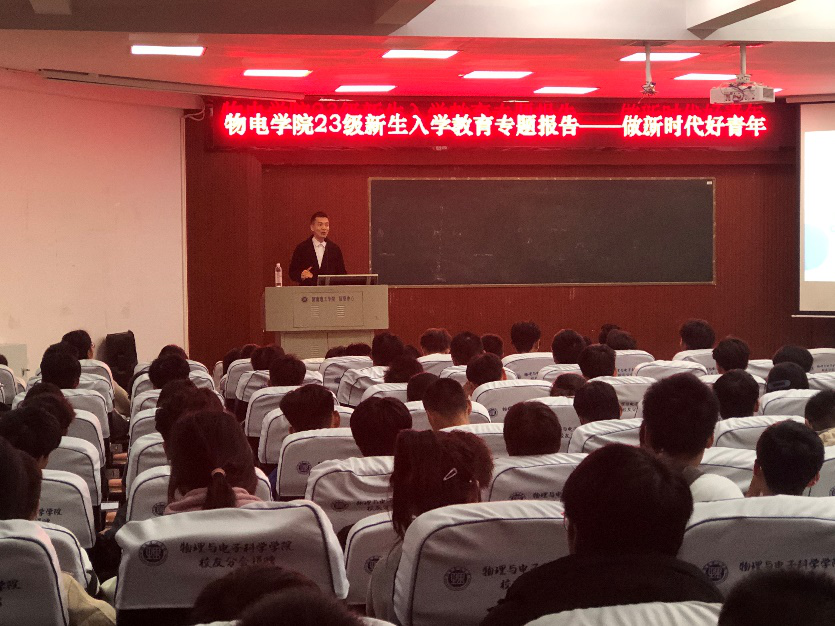 在报告中,吴振华老师结合自己的人生经历,教导新生在大学期间要认真做好四个方面的事情:一是提升自己的品德修养,树立远大的人生理想;二是学好专业知识,打造坚实的专业技能;三是提高自己的表达能力,拥有良好的沟通能力;四是锻炼身体,练就良好的身体素质。
