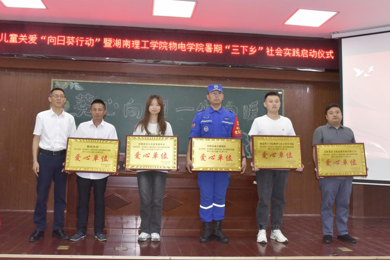陈平刚为太阳成集团tyc太阳成集团tyc122cc、岳阳市蓝天救援队、岳阳市弘方公益发展中心、岳阳市龙山文化旅游发展有限公司、板山小屋等五家“爱心单位”授予了“爱心单位”奖牌。