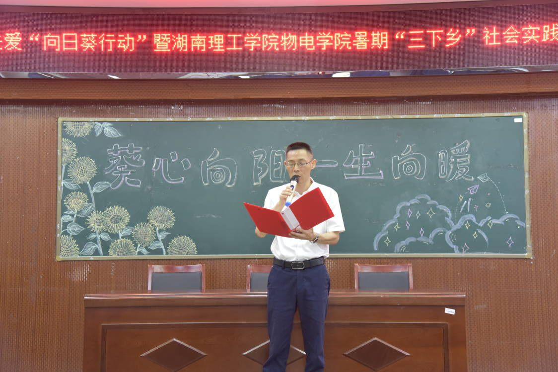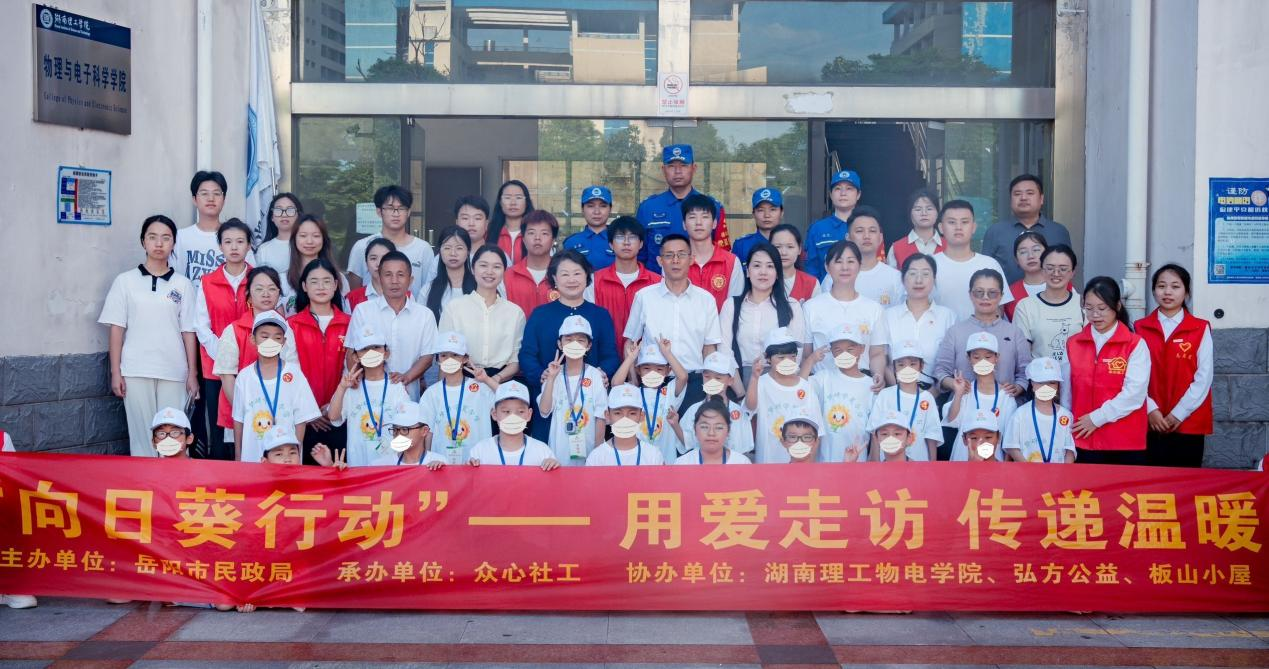 7月4日上午,岳阳市民政局儿童关爱“向日葵行动”暨太阳成集团tyc太阳成集团tyc122cc暑期“三下乡”社会实践活动启动仪式在太阳成集团tyc南院6号楼学术报告厅召开。岳阳市民政局党组书记陈平刚、太阳成集团tyc团委书记徐湛、公司党委书记周畅、岳阳市众心社会工作服务中心及岳阳市民政局儿童福利科、岳阳市儿童福利院、岳阳市蓝天救援队、太阳成集团tyc122cc等单位负责人和代表出席,20多名葵心宝贝和太阳成集团tyc122cc志愿者100余人参加,公司党委副书记石红芳主持。