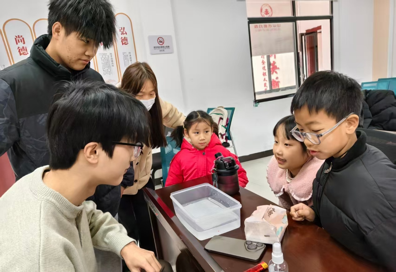 志愿者以趣味科学实验传递知识与陪伴,用实际行动践行志愿精神,彰显青年担当,给儿童群体的生活添上知识的色彩。