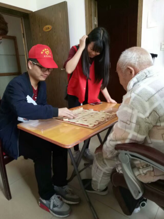在九点左右到达岳阳市第二社会福利院,在丁凤姣与黄欢的安排下,志愿者将以前志愿者与老人的合影照片送给老人。志愿者们分为两部分进行志愿活动,一部分志愿者陪伴老人,另外一部分在院子里面帮助需要帮助的老人。有的志愿者帮助身体不便的老人来到楼下晒太阳,与老人聊天,听老人讲讲过去,讨论一下现在,不仅使老人摆脱了寂寞,也使自己受到了教育。有的到各个楼层的房间,陪老人拉拉家常,看看电视,畅聊国内外新闻,有的志愿者还与老人下起了象棋,给老人们带去了欢乐。志愿者们都尽自己最大的力量让老人们感受温暖。11点左右,为了让老人也休息一下,志愿者们结束了自己这次的志愿者活动,在福利院拍照留念后乘坐公交车平安返回公司。