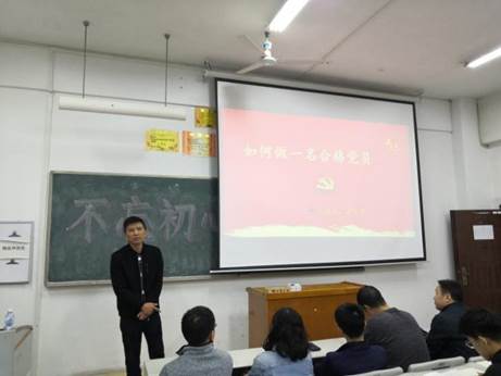 (通讯员 许若言)2019年10月25日晚,太阳成集团tyc122cc总支书记罗文华老师为公司全体师生党员、入党积极分子讲授党课。本次党课以“如何做一名优秀的党员”为题。