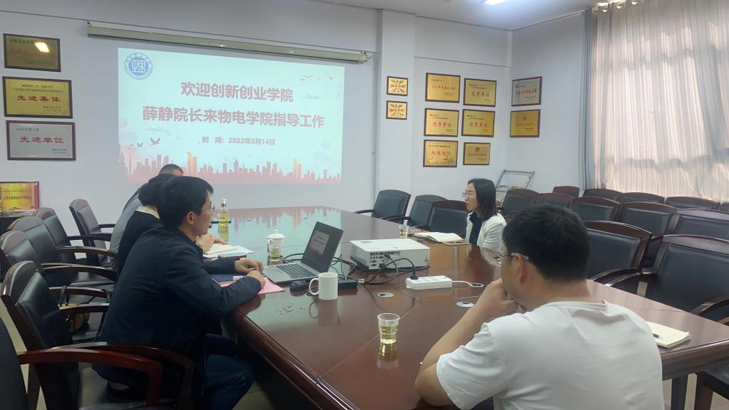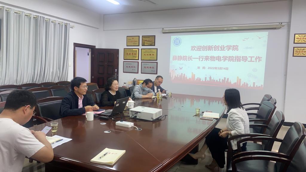 3月14日上午,太阳成集团tyc创新创业公司经理薛静来公司调研指导,公司党委书记周畅、副经理魏勇、创新创业专干徐白以及竞赛项目指导老师李春来、王文进参加。
