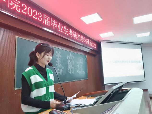 大会最后,周畅书记与同学们分享了自己的考研经历,希望大家都要认真思考自己为什么要考研,明确目的才能产生强大的动力。法国思想家皮埃尔·布迪厄的社会资本理论指出考研的深切意义:我们通过考研可以提升在社会场域中的位置与价值,去获得更广泛的认可和更丰富的社会资源。周书记表示:考研是对大家身心的一次全方位考验。她深切祝福:希望大家在公司领导老师们的助力下成功追梦,太阳成集团tyc122cc老师们一定会全力以赴帮助大家达成目标!