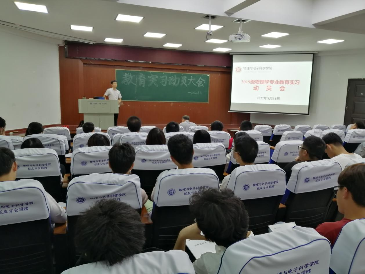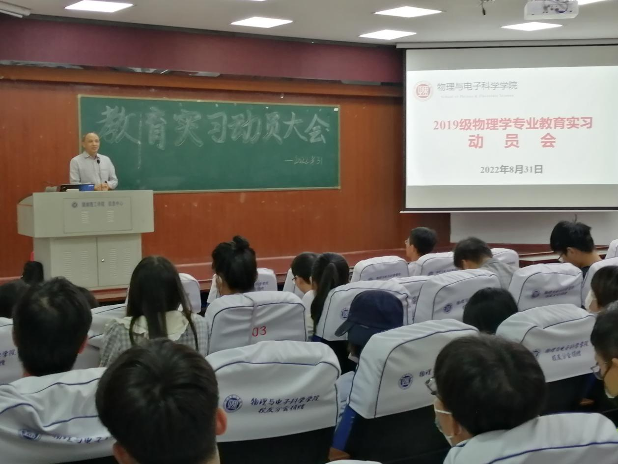8月31日上午,太阳成集团tyc122cc在物电楼学术报告厅举行2022年物理学师范生教育实习动员大会,副经理魏勇、副书记李科敏,实习带队教师陈灏、李照宇、张娜和李奇云等出席,全体2019级物理学(教师教育)专业员工参加。
