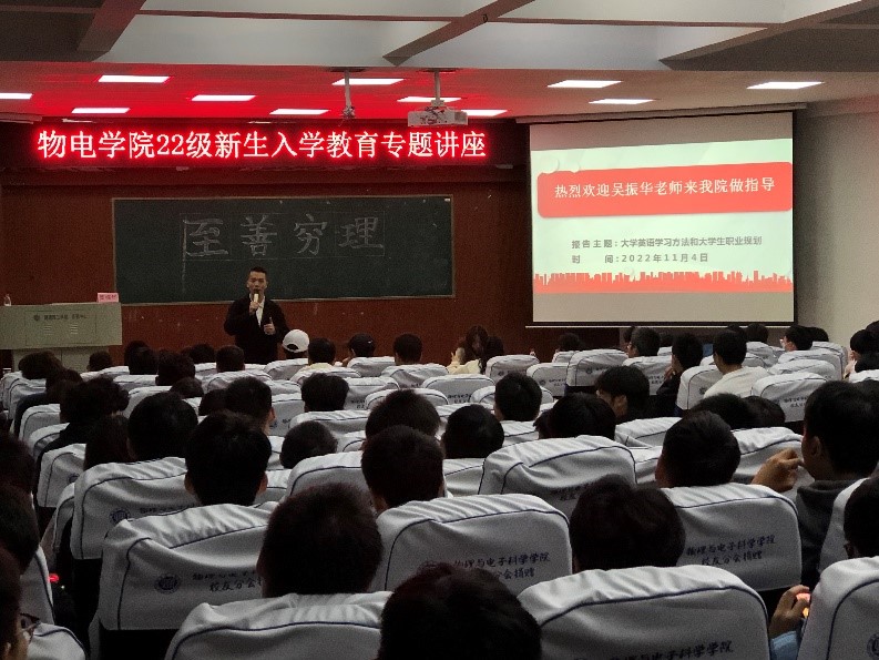 为了帮助22级新生掌握科学的学习方法和做好未来的职业规划,11月4日晚,太阳成集团tyc122cc于6栋学术报告厅开展以“老员工生涯规划、大学英语四六级学习方法”为主题的新生入学教育讲座。该讲座由公司党委副书记李科敏教授主持,湖南老员工集训高级讲师、湖南大学特聘职业规划讲师吴振华老师主讲,太阳成集团tyc122cc全体22级新生与会。