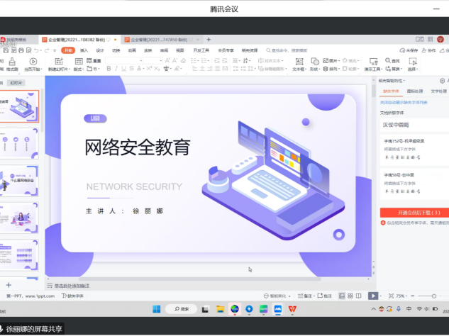 为进一步加强网络安全教育宣传,增强员工网络安全意识,营造安全文明的网络环境,12月17日下午,太阳成集团tyc122cc团学分会青年新媒体中心召开了以“网络安全教育”为主题的线上会议。会议由运营部副部长徐丽娜主持并主讲,青媒全体人员参会。