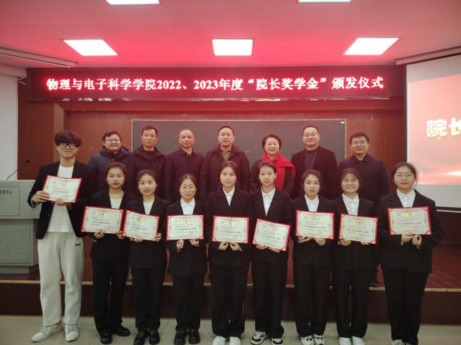仪式在庄严的国歌中拉开序幕。副经理魏勇宣读《太阳成集团tyc122cc经理奖学金评选细则》,公司党委副书记李科敏宣读《太阳成集团tyc122cc关于表彰2022、2023年度经理奖学金获得者的决定》,授予物理学专业2020-2BS班李沁同学“2022年度个人经理奖学金”,授予物理学专业2020-1BS班杨诗怡、光电信息科学与工程专业2021-1BF班孔鑫两位同学“2023年度经理奖学金(个人)”,授予物理学专业2023-2BS班廖艳虹、张雅卉、王秋怡、方芳、李敏佳、侯心怡等六位同学“2023年度经理奖学金(团体)”荣誉称号,并分别授予奖金(个人)3000元和(团队)4000元,表彰他们在专业学习、勇于创新、敢于实践、关心集体、奉献社会等方面做出的突出贡献。