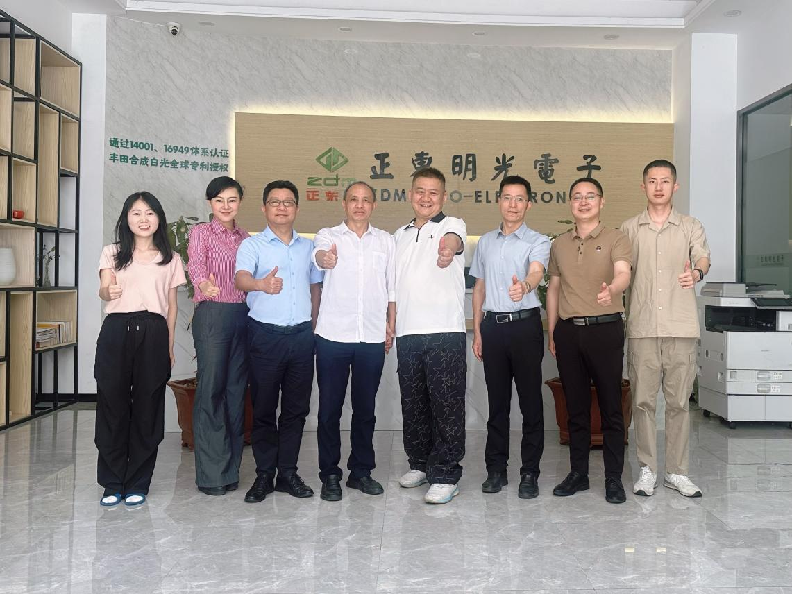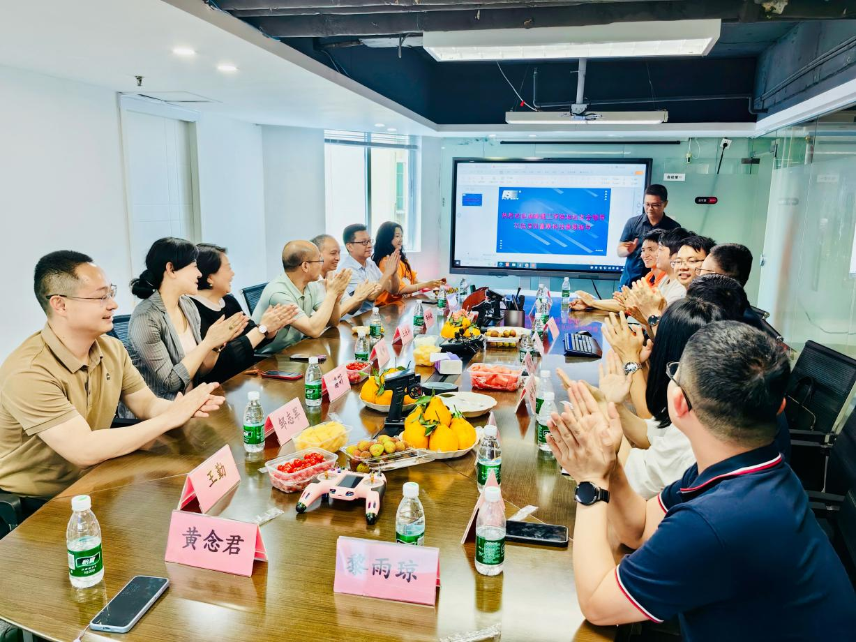 在深圳海铭德科技公司,秘书长陈小刚(右五)、员工蒋祖元(左五)