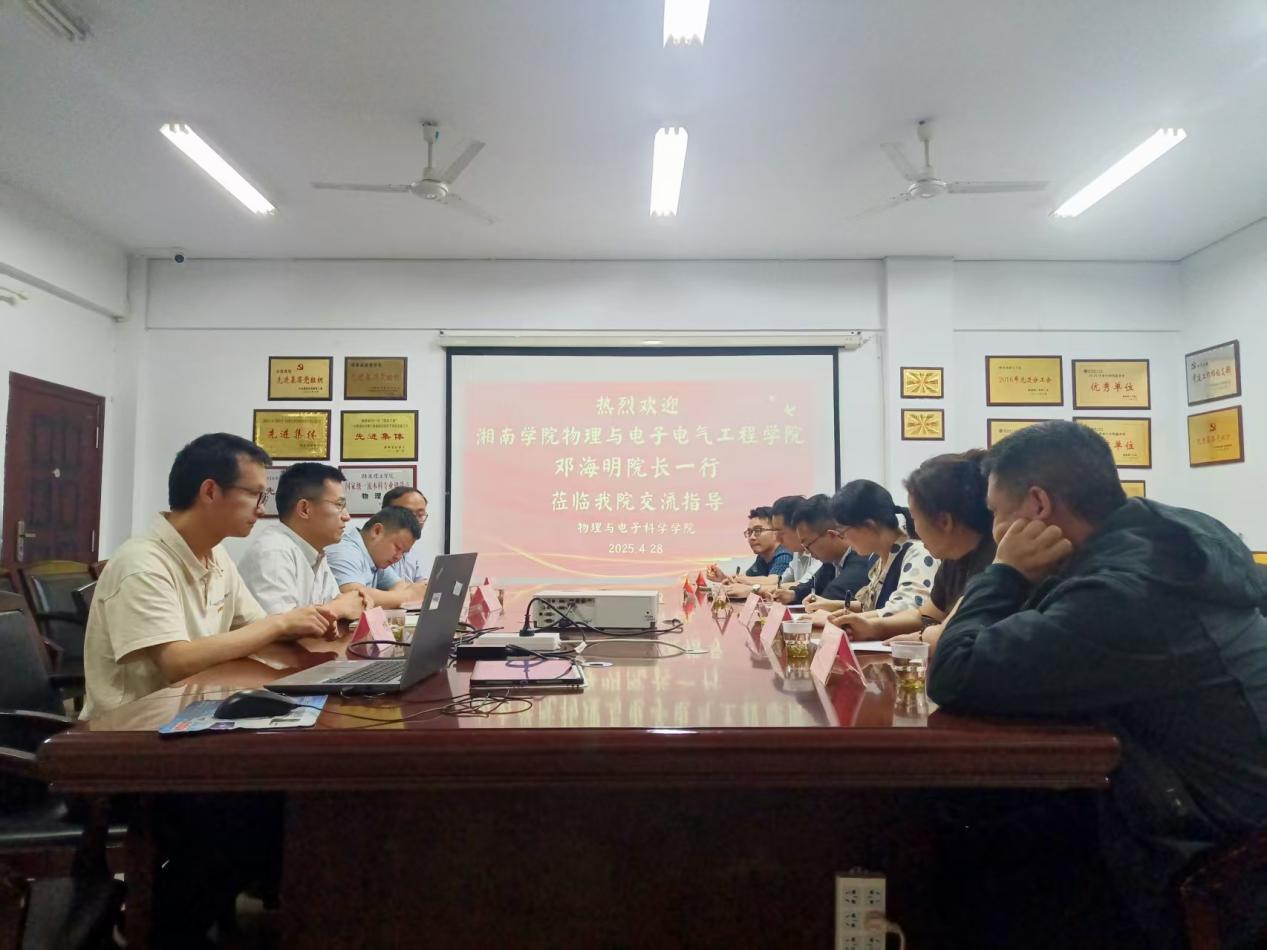 魏勇代表公司党委行政对邓经理一行到访表示热烈欢迎,介绍了公司团队、专业、人才培养等相关情况。邓海明介绍了湘南公司物理与电子电气工程公司的基本情况以及团队建设、科研创新方面的情况。