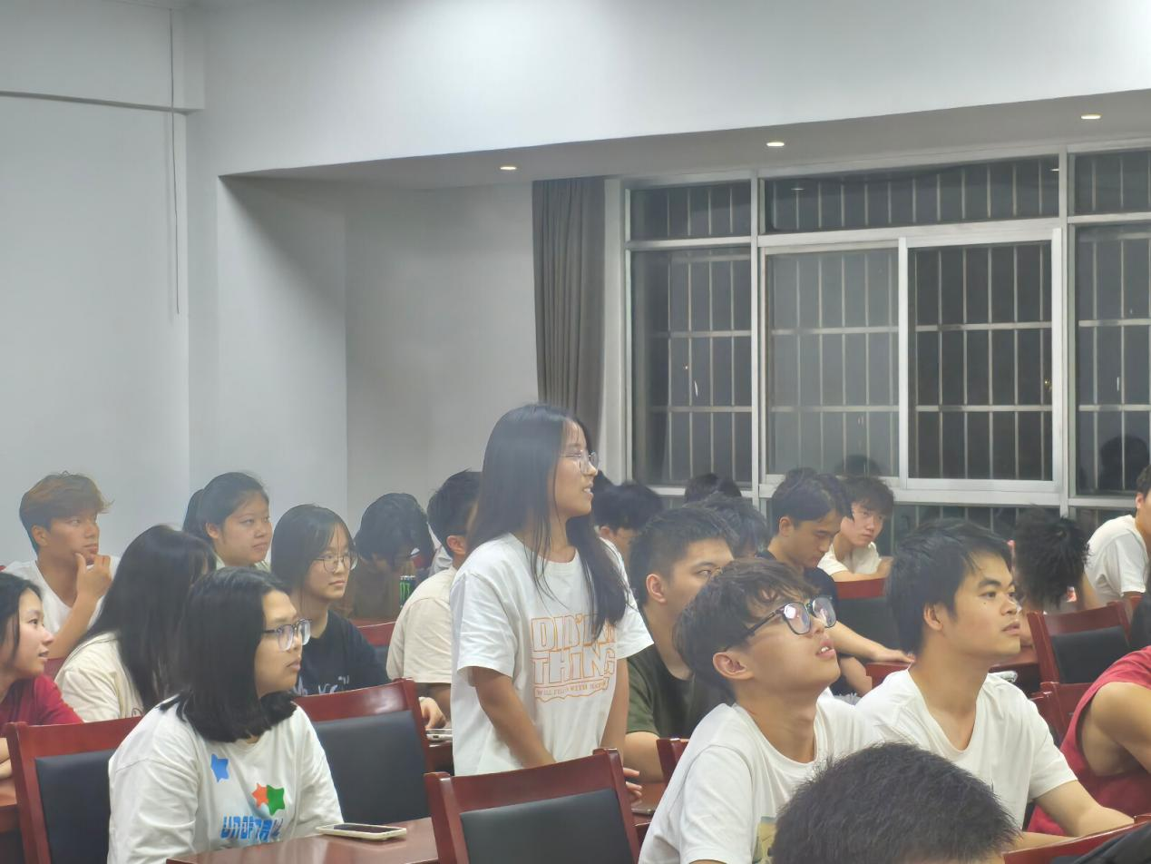 互动环节同学们踊跃提问,针对湘潭大学物理专业研究方向选择问题,祈祥结合学科趋势予以解答,马新国就研究生生活、就业前景等问题进行解答。