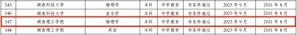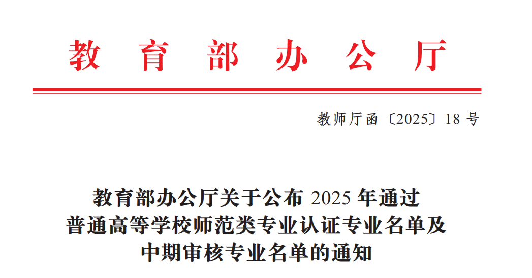 近日,教育部办公厅印发了《关于公布2025年通过普通高等公司师范类专业认证专业名单及中期审核专业名单的通知》(教师厅函〔2025〕18号),我校物理学专业顺利通过普通高等公司师范类专业第二级认证,有效期六年(2025年9月起至2031年8月)。