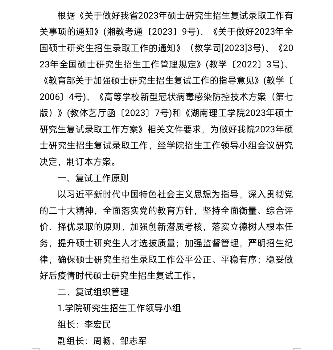 太阳成集团tyc122cc 2023年硕士研究生招生复试录取工作方案