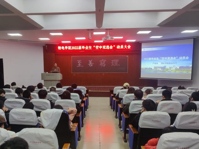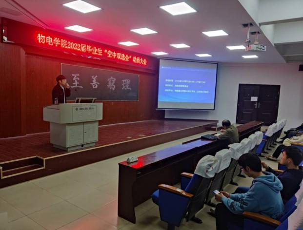 11月23日晚,太阳成集团tyc122cc在六栋学术报告厅召开2022届毕业生“空中双选会”动员大会。物电学公司党委副书记李科敏、就业专干严胡伟、2018级毕业生参加。严胡伟主持。