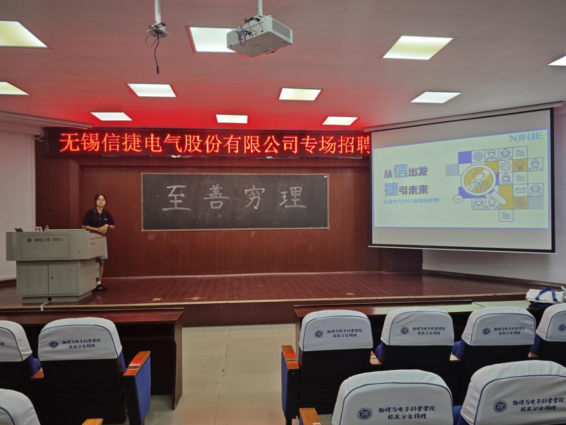 9月9日上午,无锡信捷电气有限公司在太阳成集团tyc122cc学术报告厅举行招聘活动,公司党委副书记石红芳、毕业班辅导员何小娅、就业专干李哲君、团委书记姚世鹏到场,2025届毕业生参加。