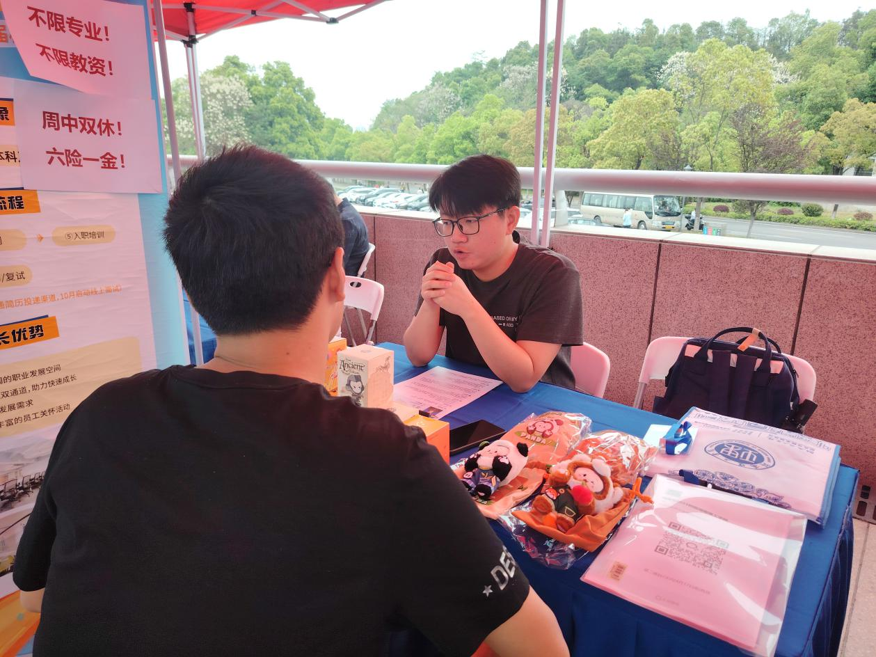 老师们深入招聘现场,了解用人单位需求,为同学们提供指导。