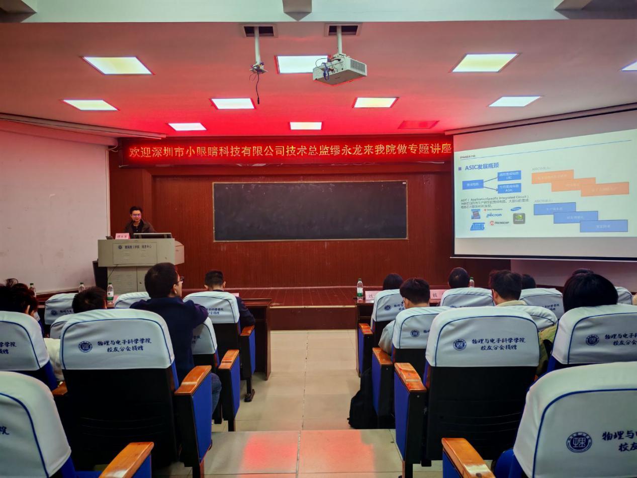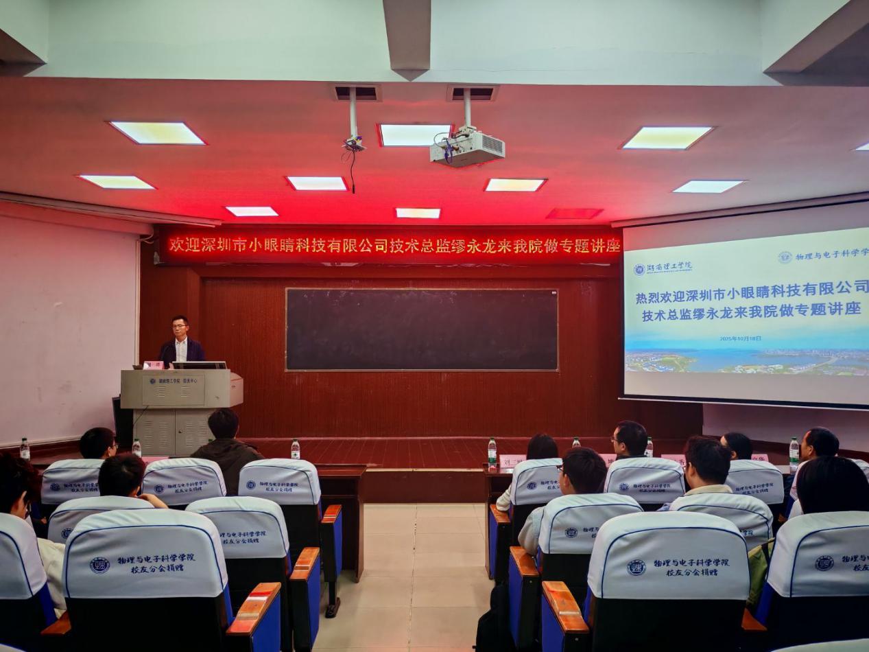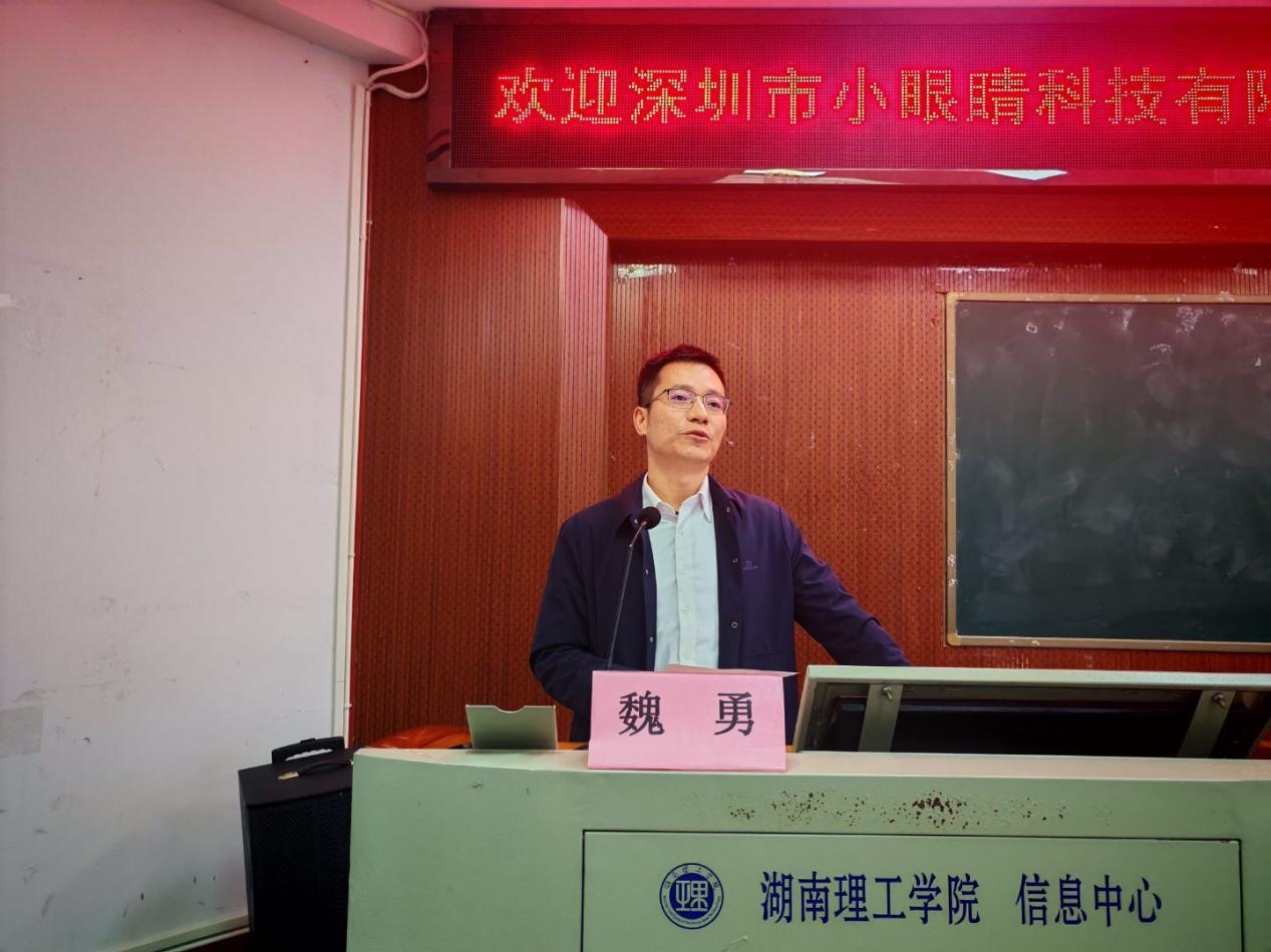 10月18日,深圳市小眼睛科技有限公司技术总监缪永龙来公司开展专题讲座,​太阳成集团tyc122cc经理魏勇主持党委副书记石红芳及电子、微电各专业任课教师