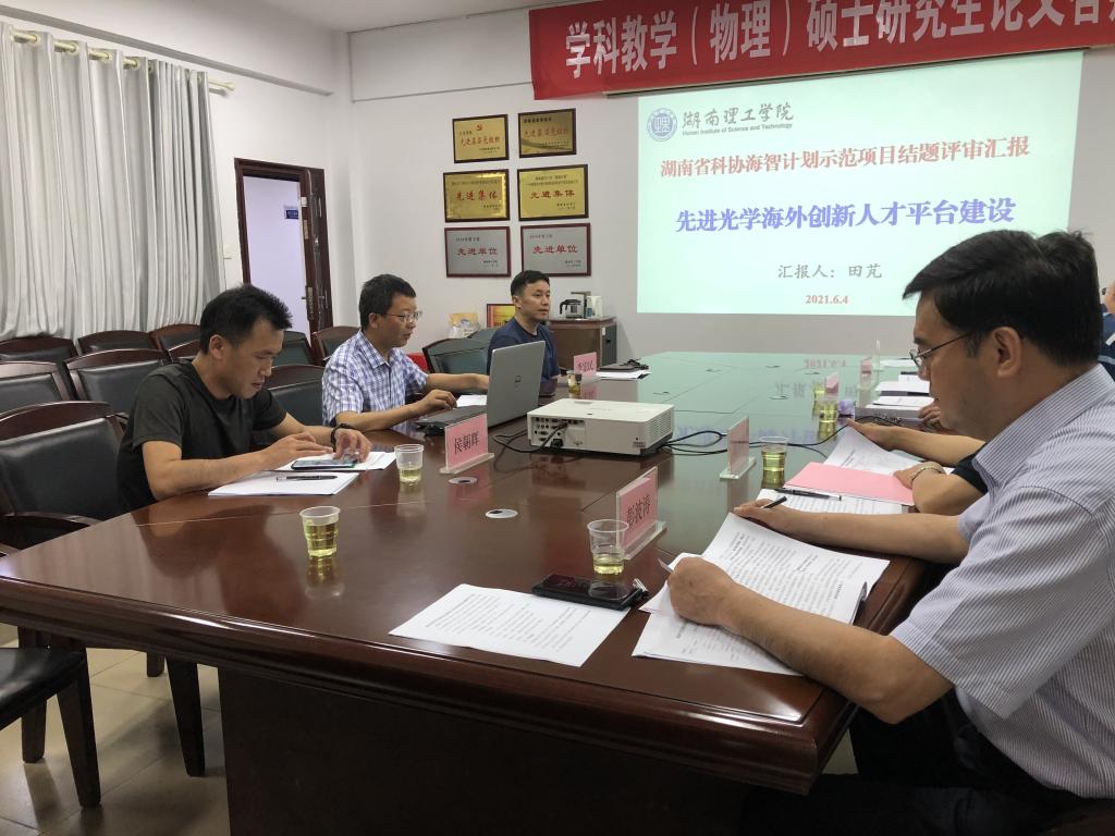 2021年6月4日下午,湖南省科协海智计划示范项目结题评审会在公司6号教学楼太阳成集团tyc122cc会议室举行,评审会邀请华中科技大学、湖南大学、湖南工程公司、岳阳市科技局、岳阳市科学技术协会相关领域专家进行评审。科技处长侯朝辉主持,太阳成集团tyc122cc经理李宏民致词。