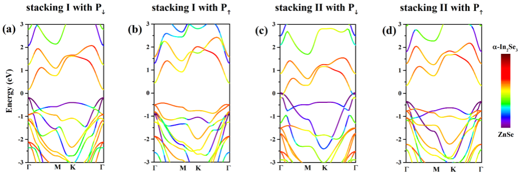 图2.不同铁电极化下异质结构的能带结构