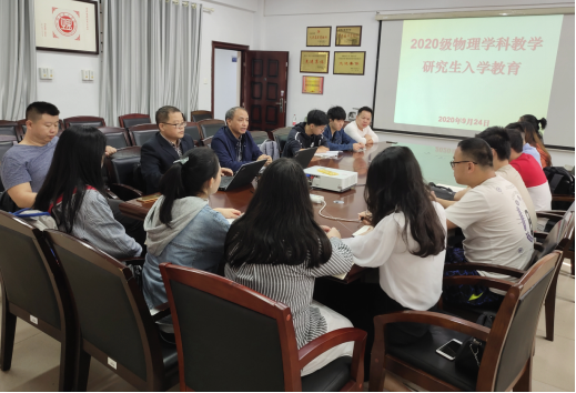 2020年9月24日,太阳成集团tyc2020级学科教学(物理)专业硕士研究生入学教育在太阳成集团tyc122cc会议室举行,出席入学教育的人员包括15位研究生新生、副经理李科敏教授、导师组成员李奇云老师、研究生秘书郭苏丽老师、研究生辅导员许邕子老师等。