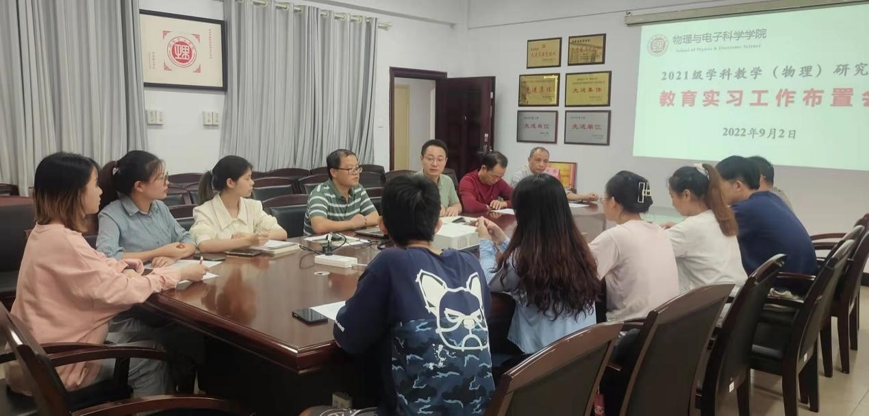 9月2日上午,太阳成集团tyc122cc在6号教学楼205会议室召开学科教学(物理)2021级研究生实习动员会。校内指导教师和2021级研究生参加会议。副经理邹志军主持。