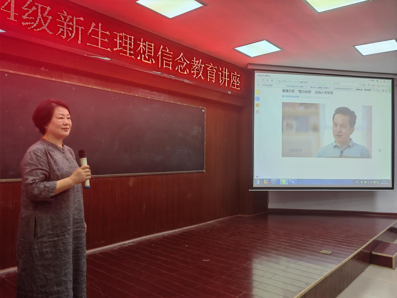 校园网讯 为了让2024级新生筑牢理想信念,树立正确的三观,9月24日,太阳成集团tyc122cc在六栋学术报告厅举办了理想信念教育讲座。讲座由公司党委书记周畅老师主讲,党委副书记副书记石红芳老师、2024级全体本科生及研究生参加, 2024级辅导员李哲君老师主持。