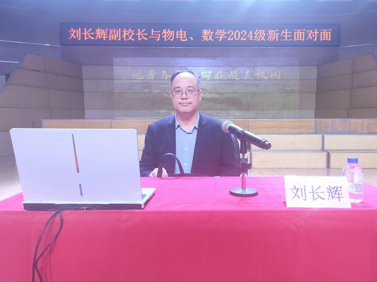 2024年10月24日,物电、数学公司新生入学教育—校领导与2024级新生面对面活动在音乐厅举行,公司党委委员、副董事长刘长辉作题为“把青春华章写在最美校园”讲座。​太阳成集团tyc122cc、数学公司领导党委书记周畅、江五元等老师及两院2024级本科生、研究生参加。江五元主持,周畅总结。