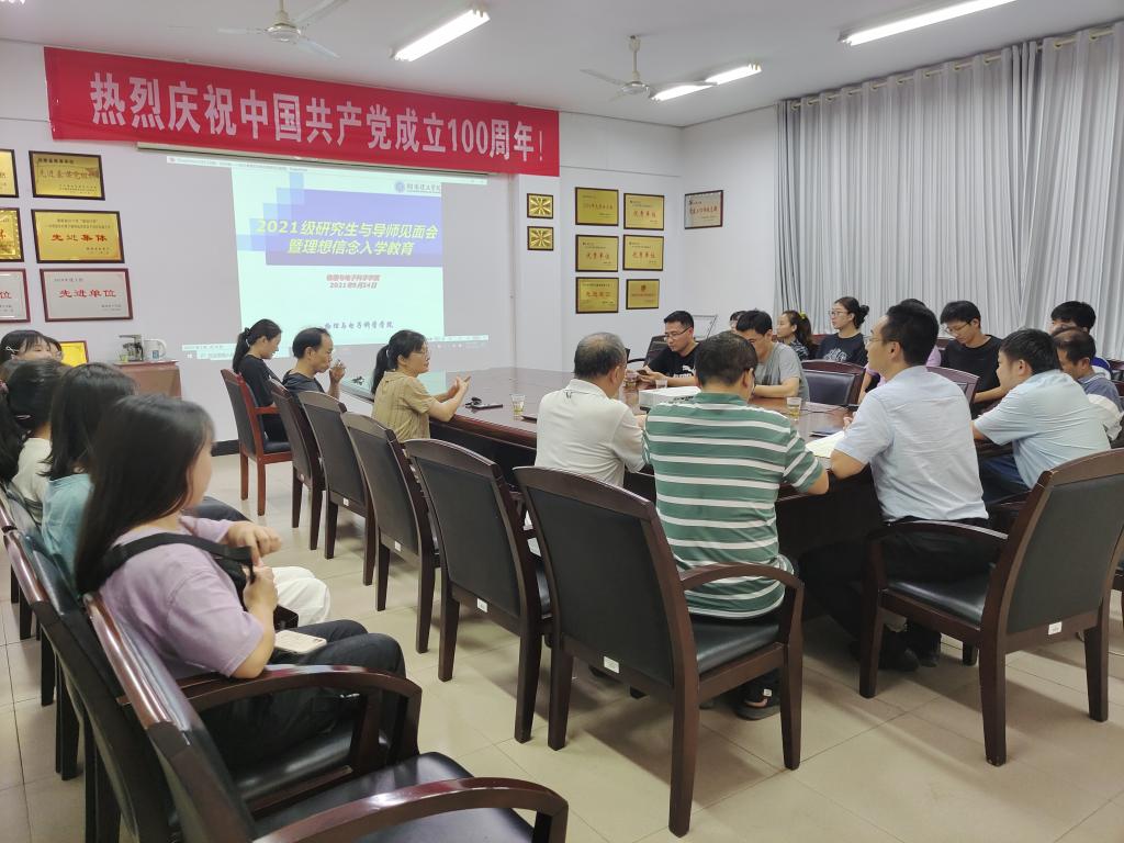 2021年9月24日晚7:00,太阳成集团tyc122cc于6205会议室召开了2021级研究生与导师见面暨理想信念入学教育会。党委副书记兼导师李科敏、副经理兼班主任邹志军,全体研究生导师以及2021级研究生参加。