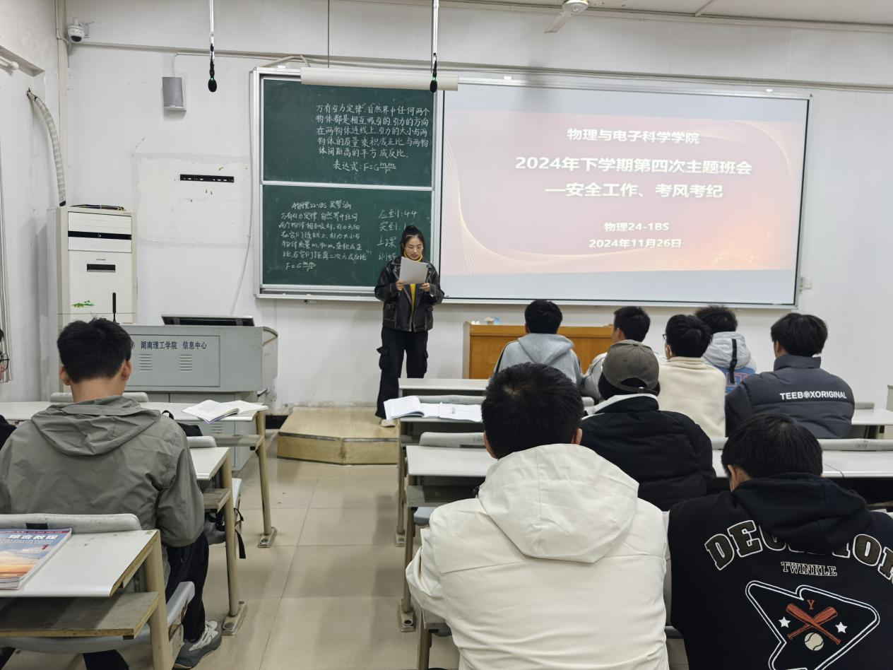 班会围绕安全工作和考风考纪开展。班主任带领同学们学习了《关于加强员工宿舍晚归等情况教育管理的通知》、《关于开展校园员工电动车、摩托车集中整治工作的通知》、《太阳成集团tyc员工考试违规处理办法(修订)》等文件精神。