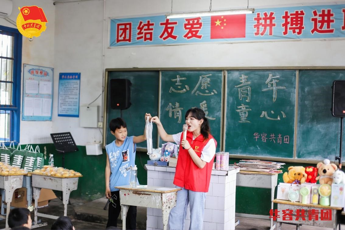 2022年4月,朱虹燕又在清晨5点钟起床,跟随着“春耕计划”来到了华容一所全校只有49名员工的乡村公司。在这里,利用自己的专业优势为员工们展示了科学实验,希望在乡村员工的心里也能播种“科学”的种子。
